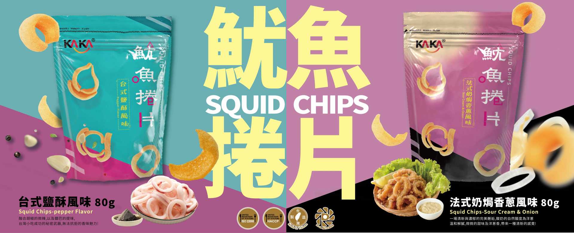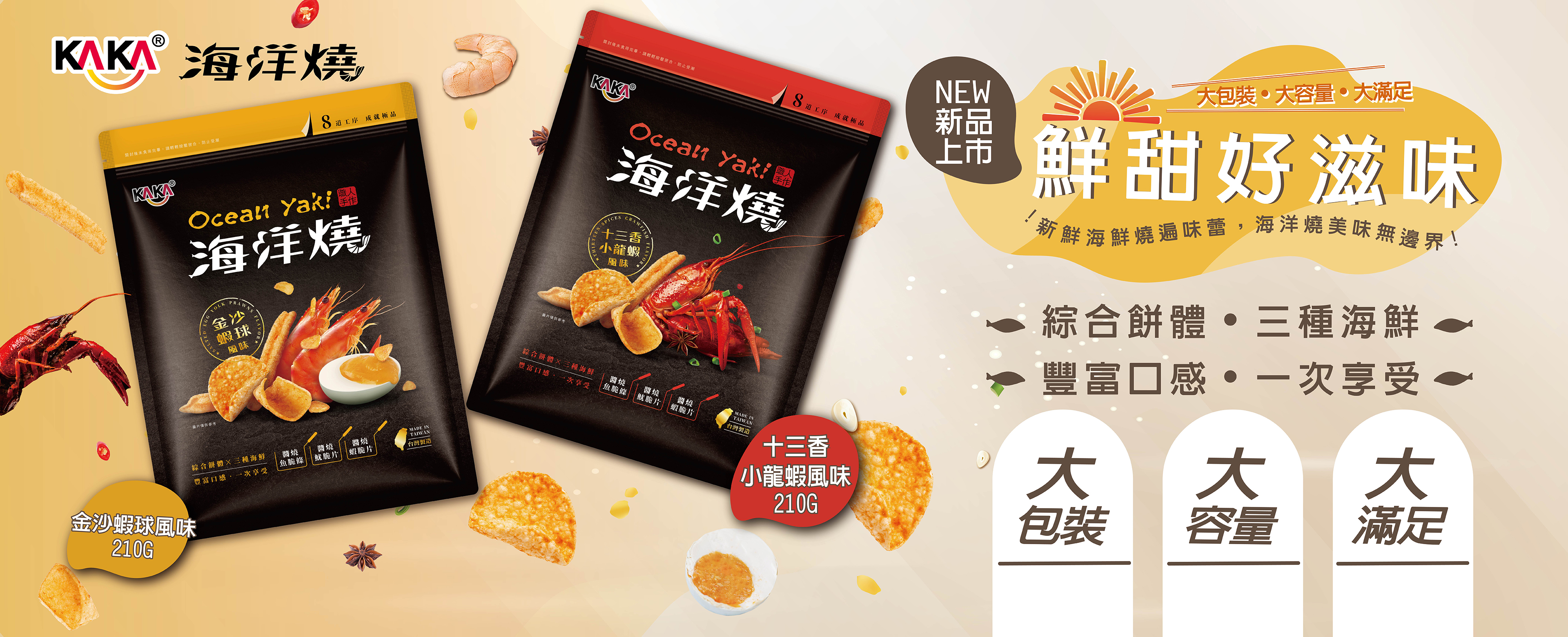 「卡卡食品」,您的海鮮餅乾專家,2006年以名產、網購、團購銷售冠軍王,廣受消費者喜愛,目前台灣各大通路賣場均有特規商品販售。